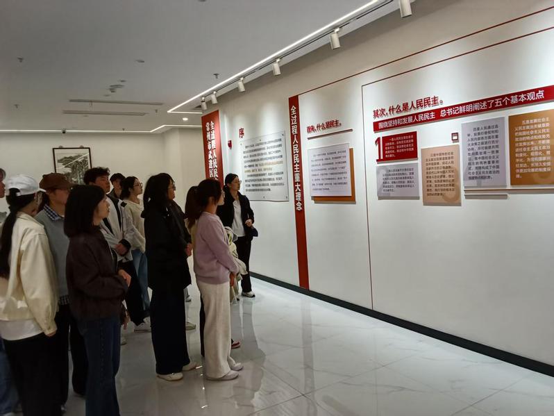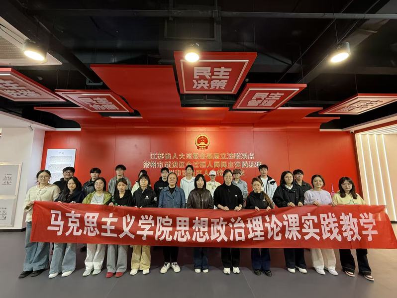 现场教学深化理解。在王诤故居,带队教师结合电讯事业的发展,讲解科技自立自强的重要性;在常州长江大保护展示馆,师生共同探讨生态文明建设的重大意义与地方实践;在武进区全过程人民民主实践基地,负责人详细讲解民主协商的具体流程与成效。这种紧密结合场地特色的现场教学使理论知识瞬间“活”了起来。