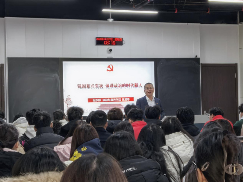 1217日,党委副书记、校长王志华深入2024级旅游专业课堂,以“学习党的二十届四中全会精神”为题,为同学们讲授了一堂主题鲜明、内涵深刻的专题思政课。王志华从党的二十届四中全会的历史方位与时代意义切入,深刻阐释了“十五五”时期在全面建设社会主义现代化国家进程中的关键意义。他系统解读了规划的战略背景、核心原则与实施路径,通过辨析“计划”与“规划”的时代内涵,引导学生领悟党和国家治国理政的系统思维与战略主动。他鼓励学生立足专业、胸怀大局,深刻认识中国式现代化的宏伟蓝图与实践路径,自觉将个人学业与职业规划融入国家发展浪潮,在以中国式现代化全面推进中华民族伟大复兴的征程中,找准方位、担当使命、实现价值。