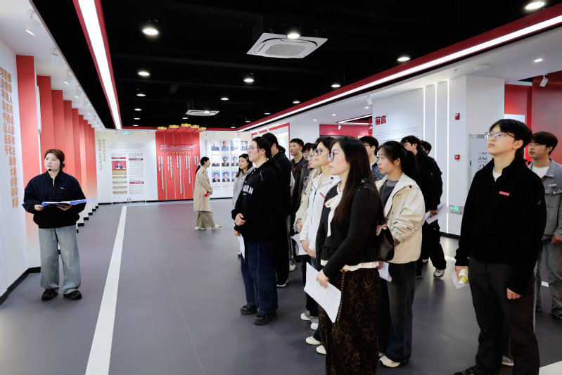 在基地工作人员的引导下,师生们依次参观了人大履职展示区、立法联系点工作坊、民生实事票决制成果展等核心功能区。作为江苏省省级基层立法联系点,该基地生动呈现了从民意收集、立法征询到监督落实的完整闭环。同学们驻足于“民生实事项目票决制”案例墙前,看到“老旧小区加装电梯”“口袋公园建设”等群众身边的“关键小事”如何通过人大代表票决成为政府“民生大事”,真切感受到全过程人民民主“全链条、全方位、全覆盖”的实践特质。